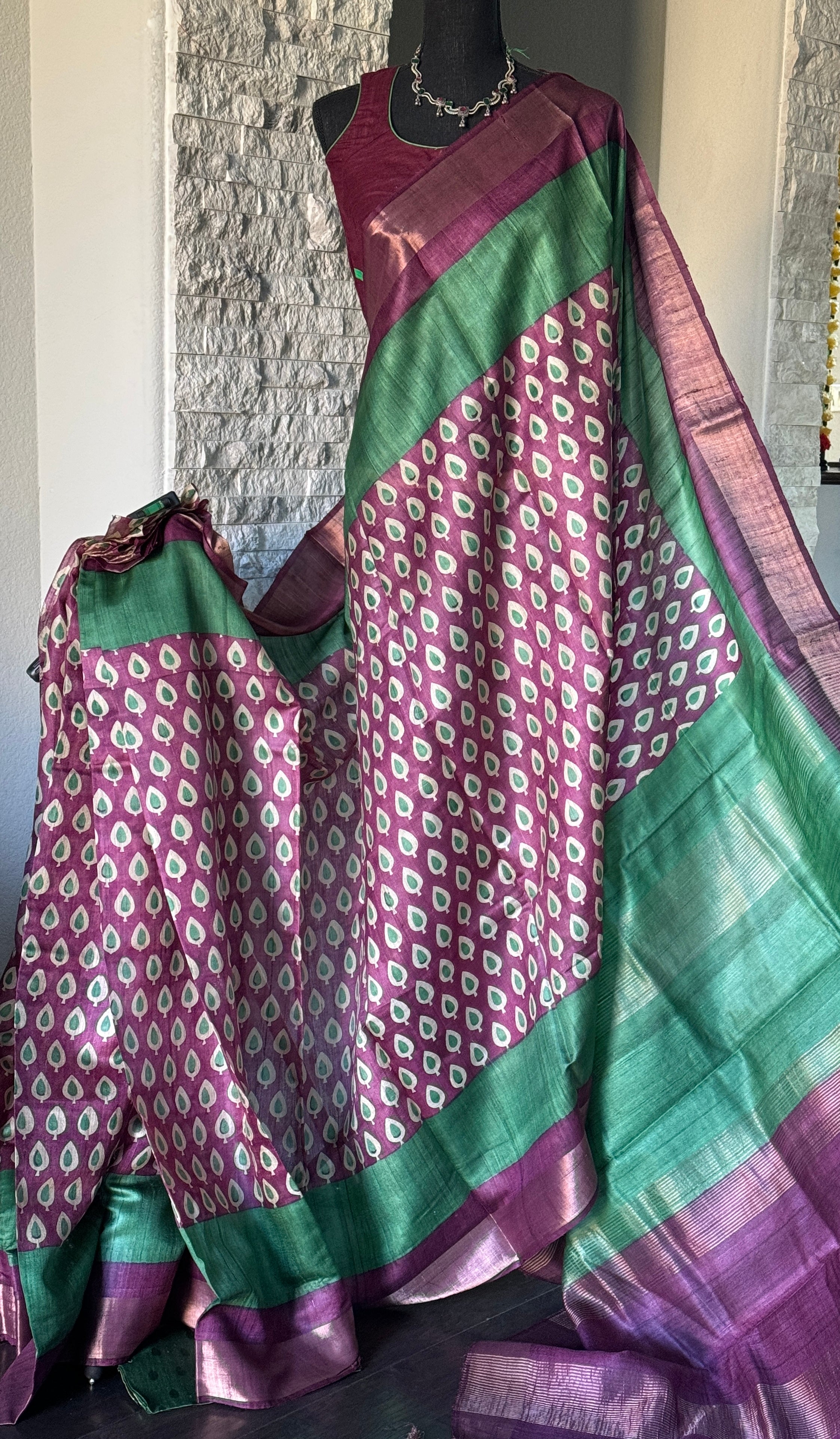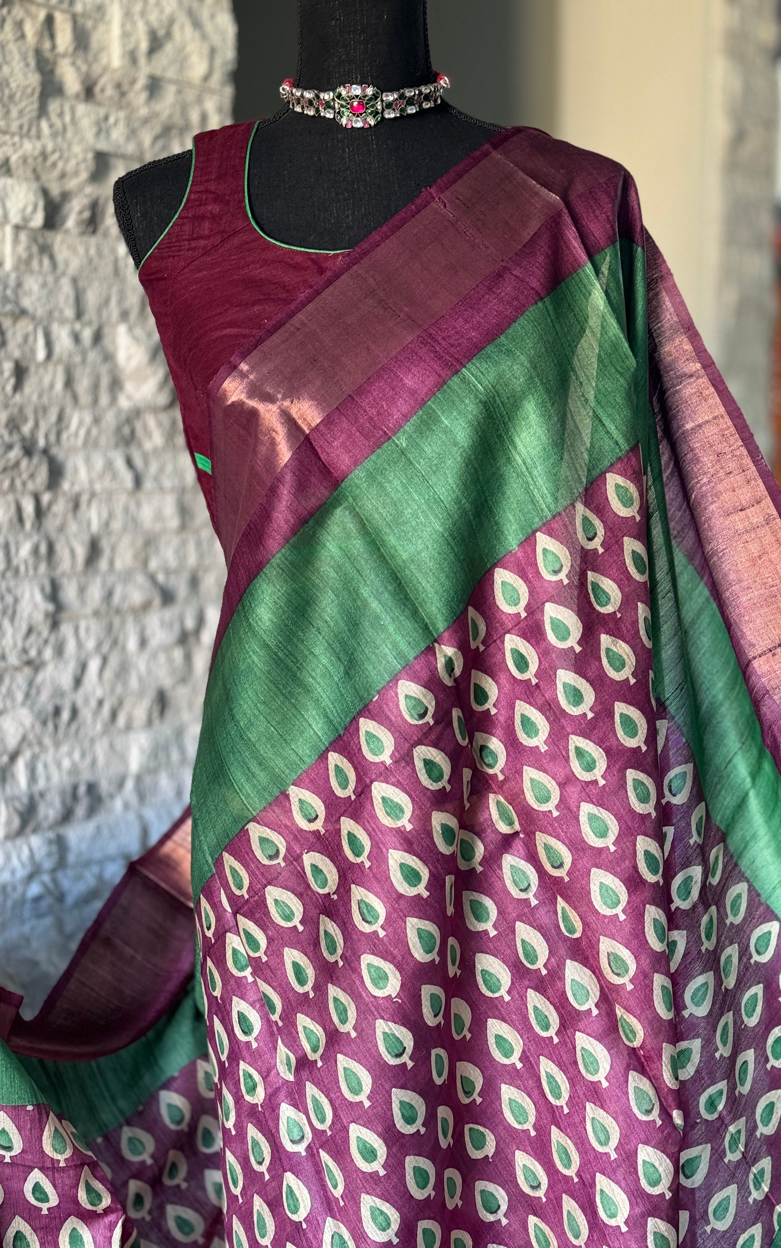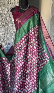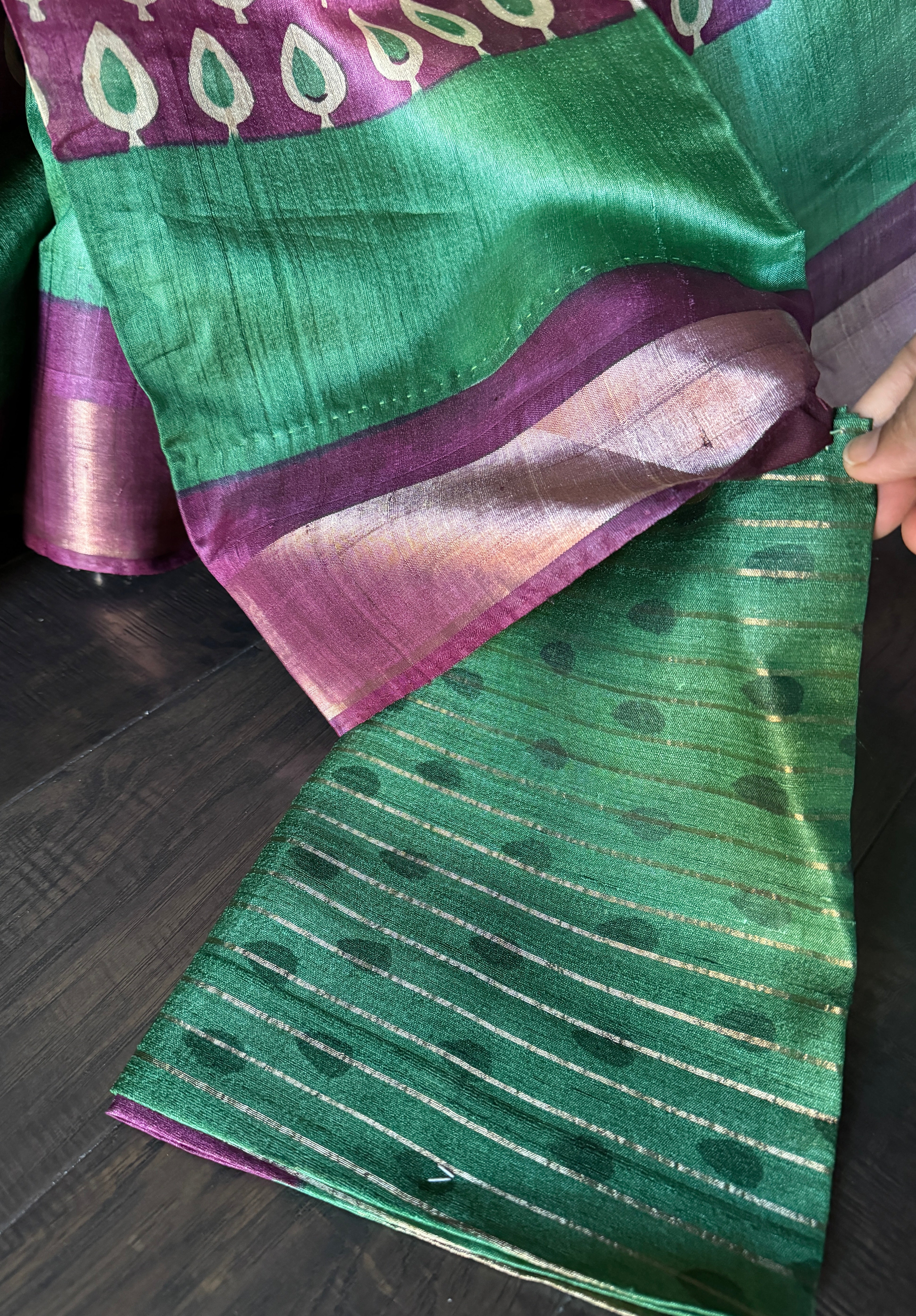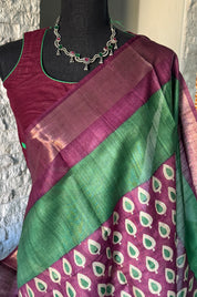 Pure Tussar Silk - Green Purple