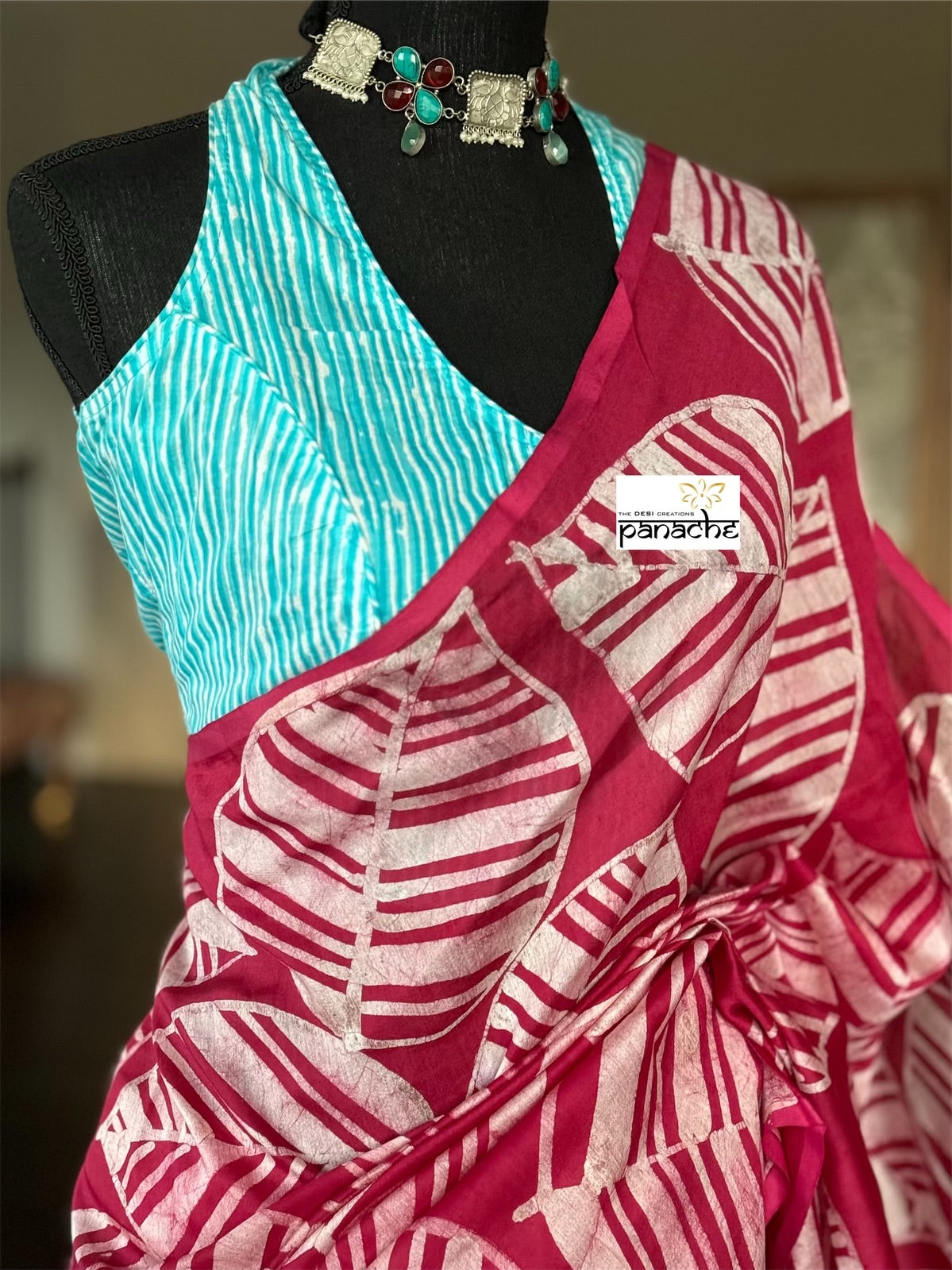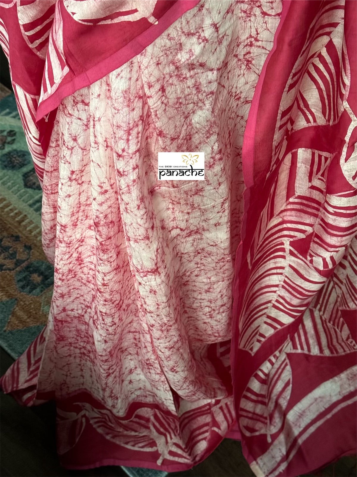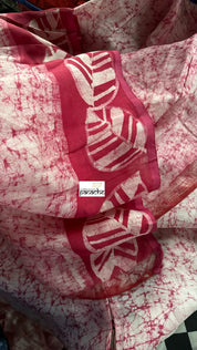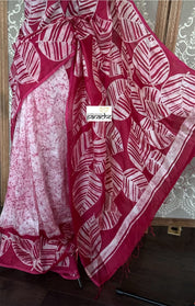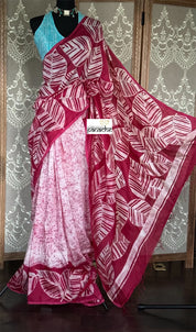 Design: Hand batik on bafta tussar, leaf design on skirt border, palla and front part of the saree. Saree fabric is soft , will fall nicely.