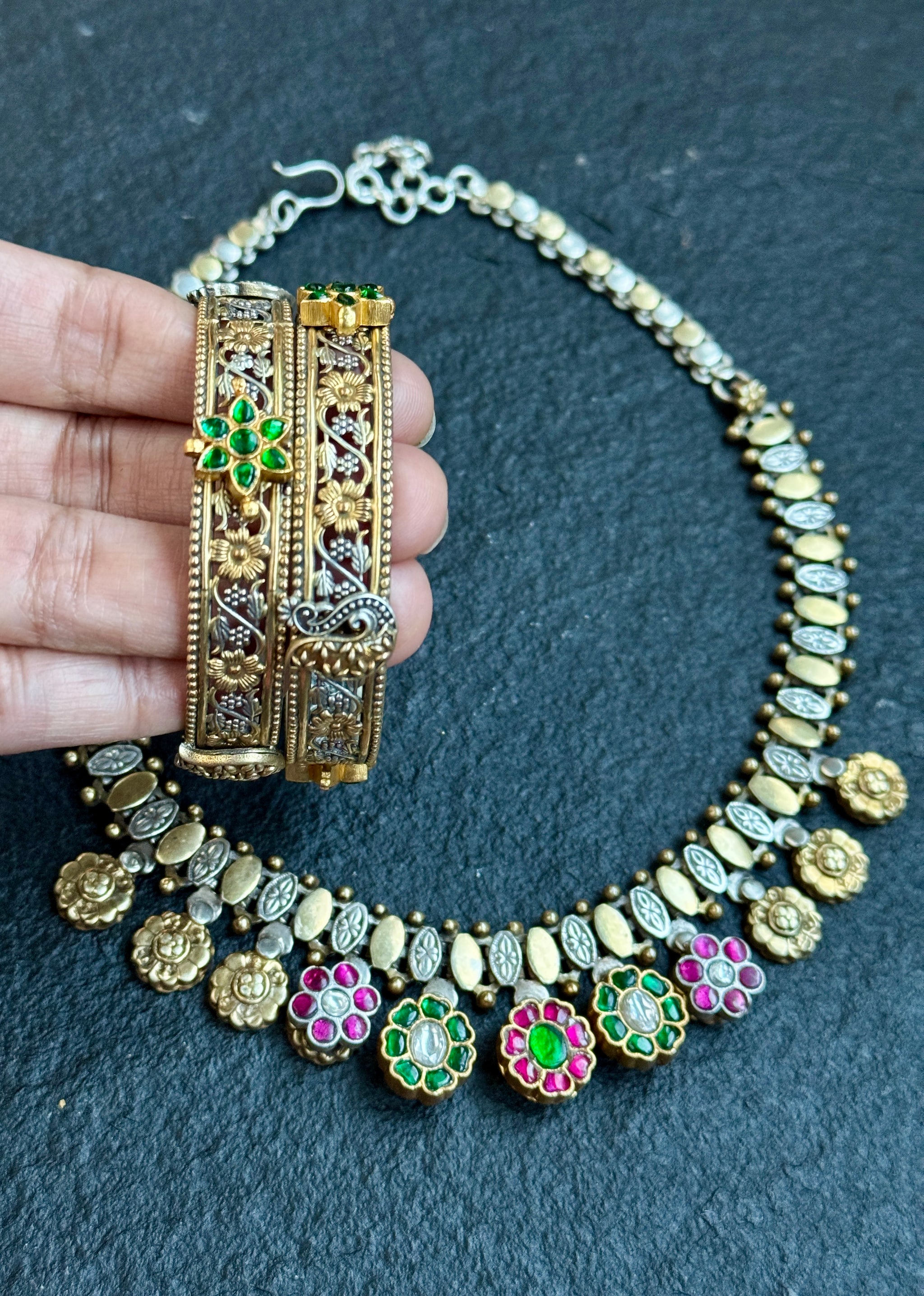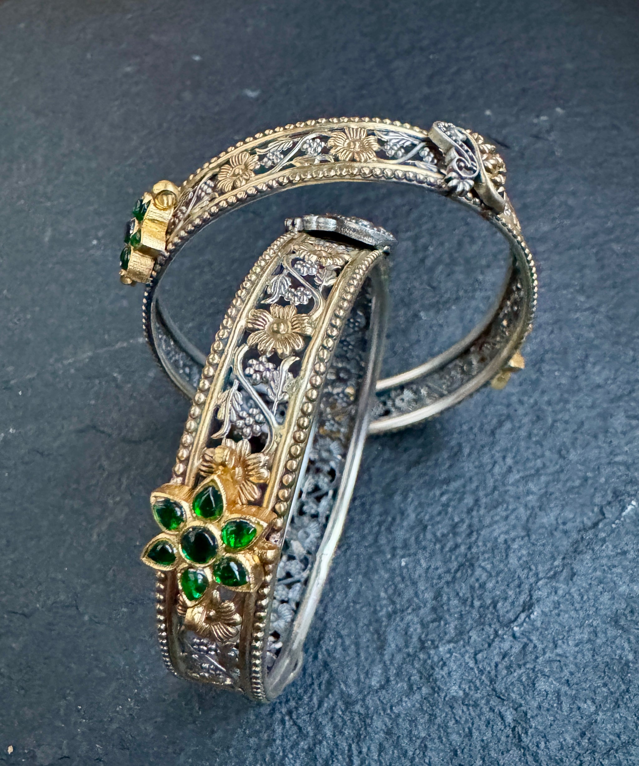 Bangle Pair 925 Silver- Jaali Dual Tone