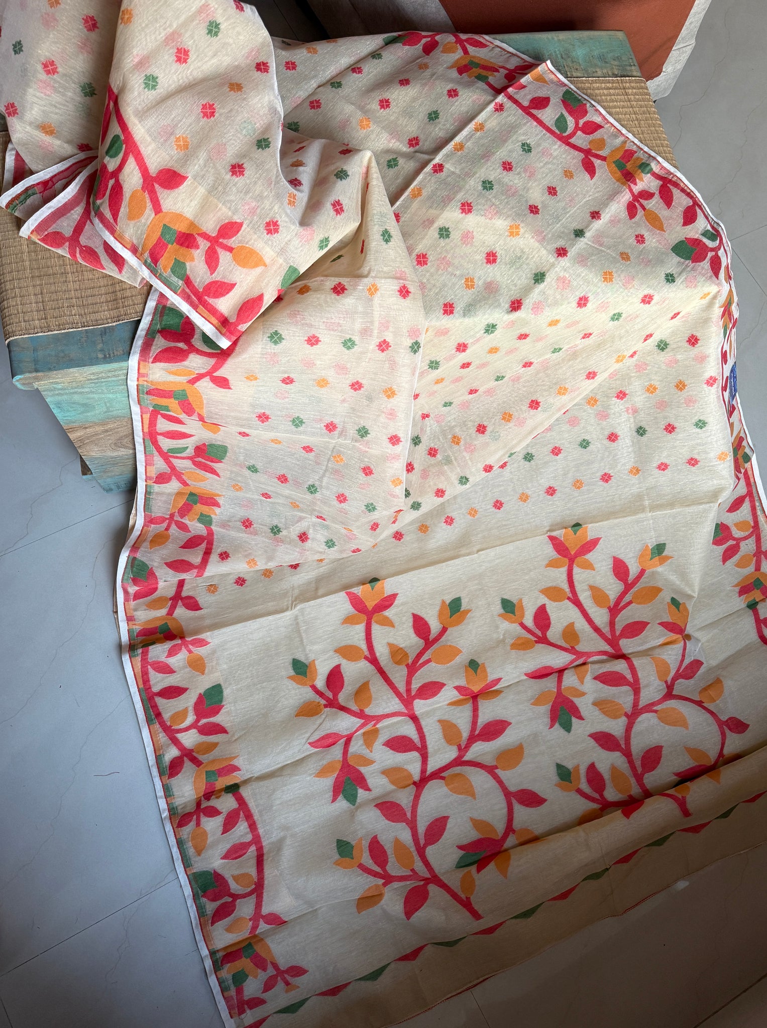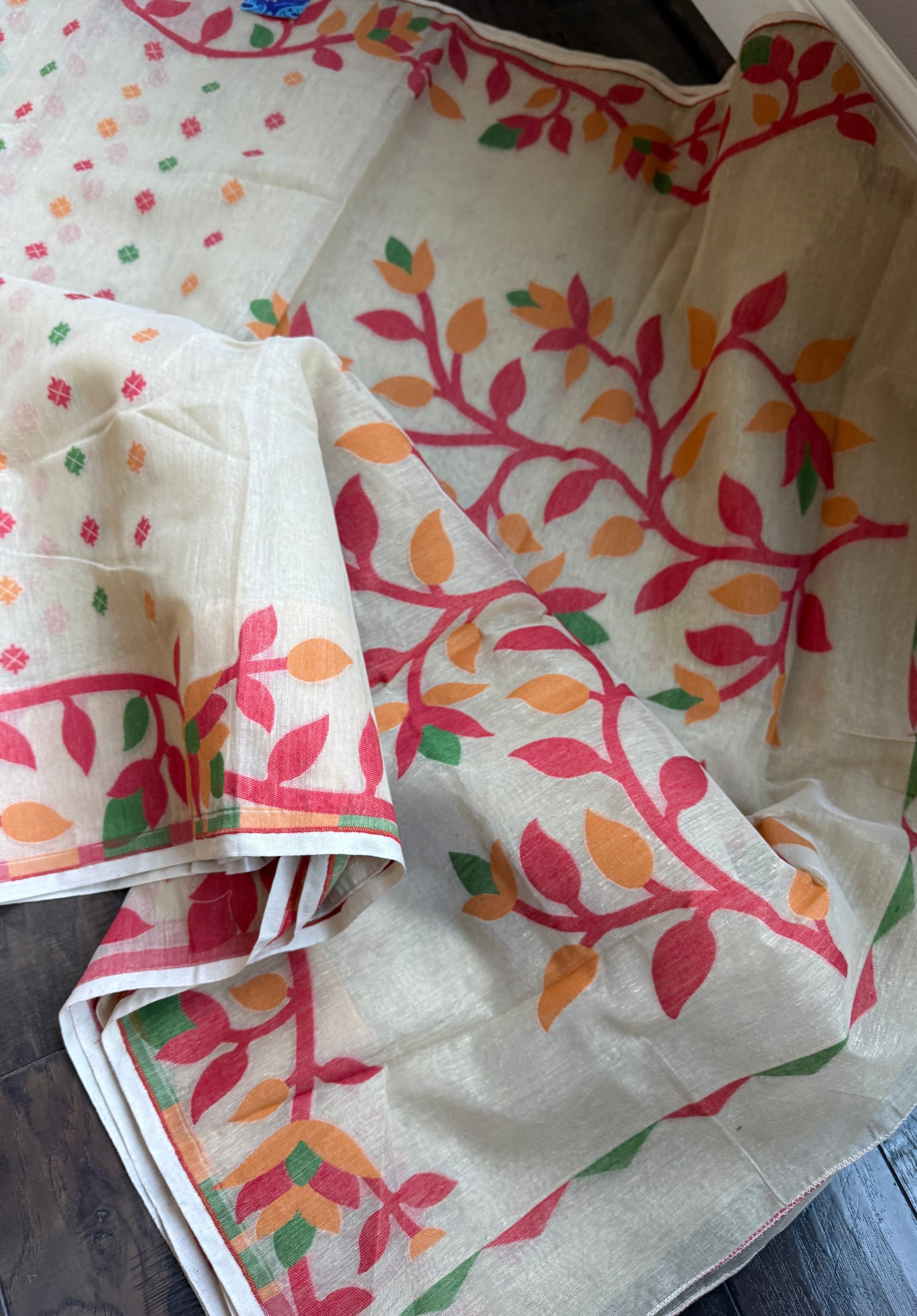 Cotton Jamdaani - Beige Red Multi Colored 2