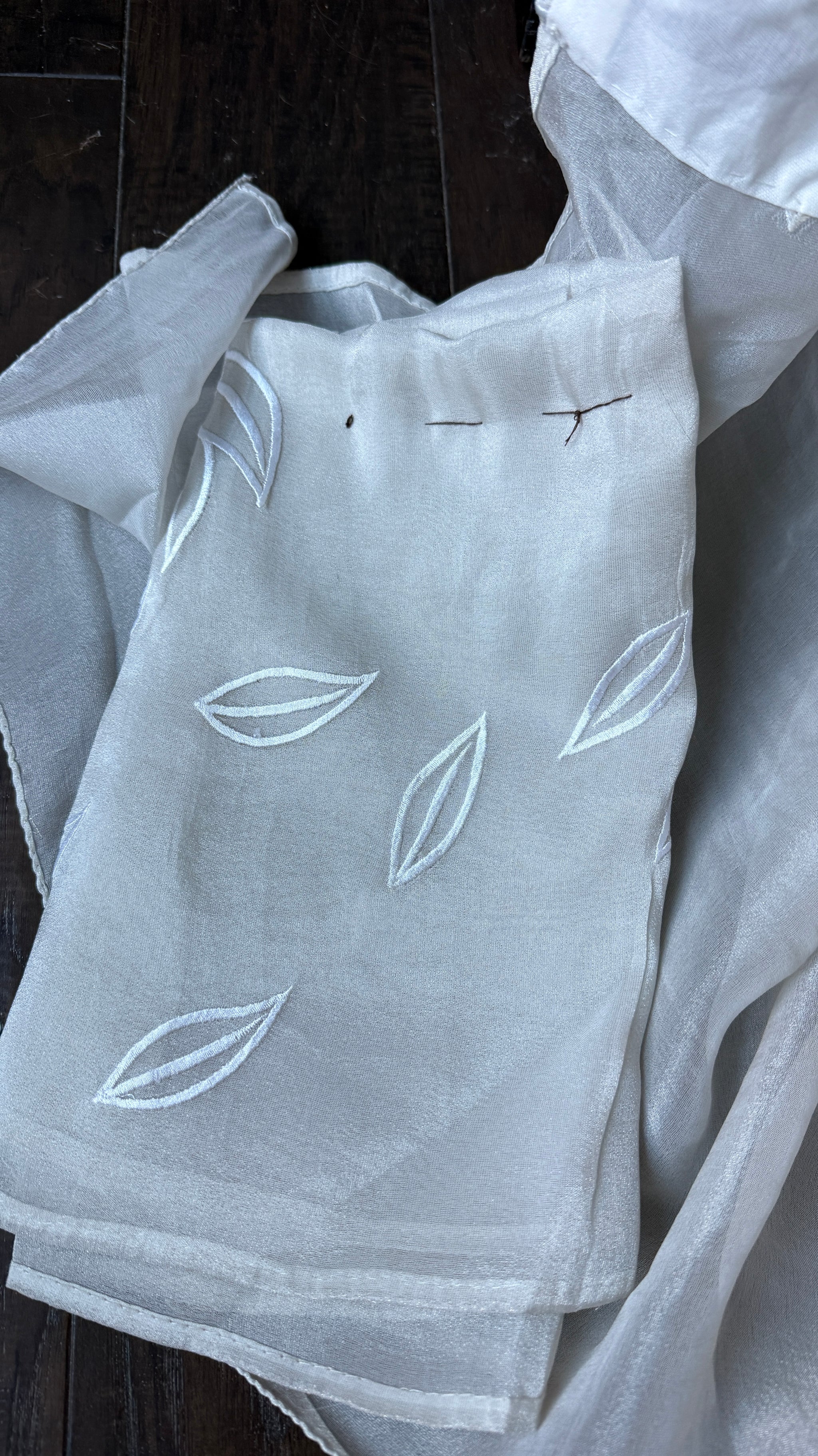 Design : Body is ice grey cutwork embroidered.