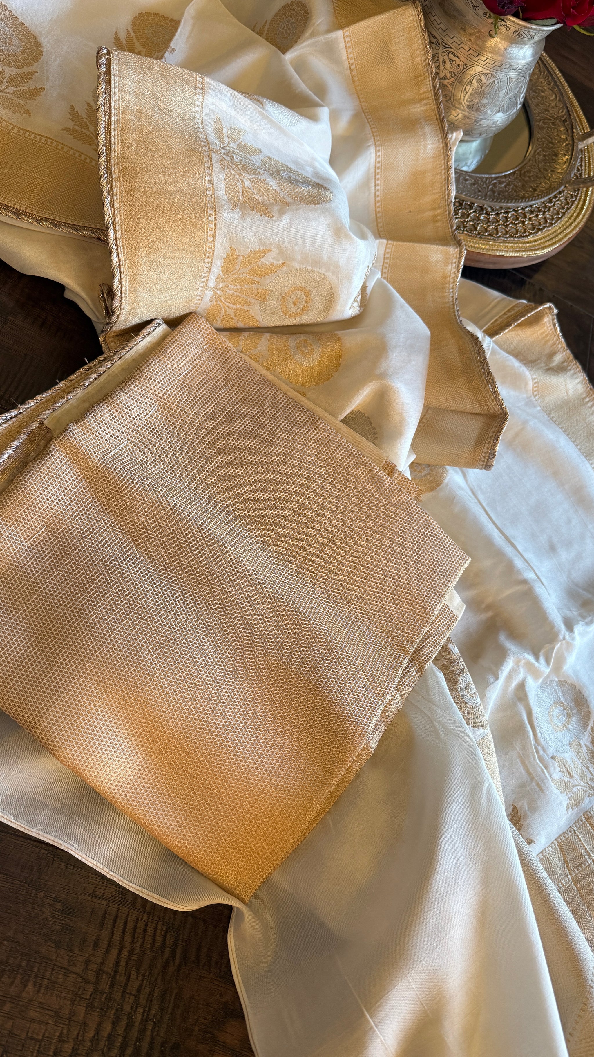 Color: Off-White, golden and Silver Zari