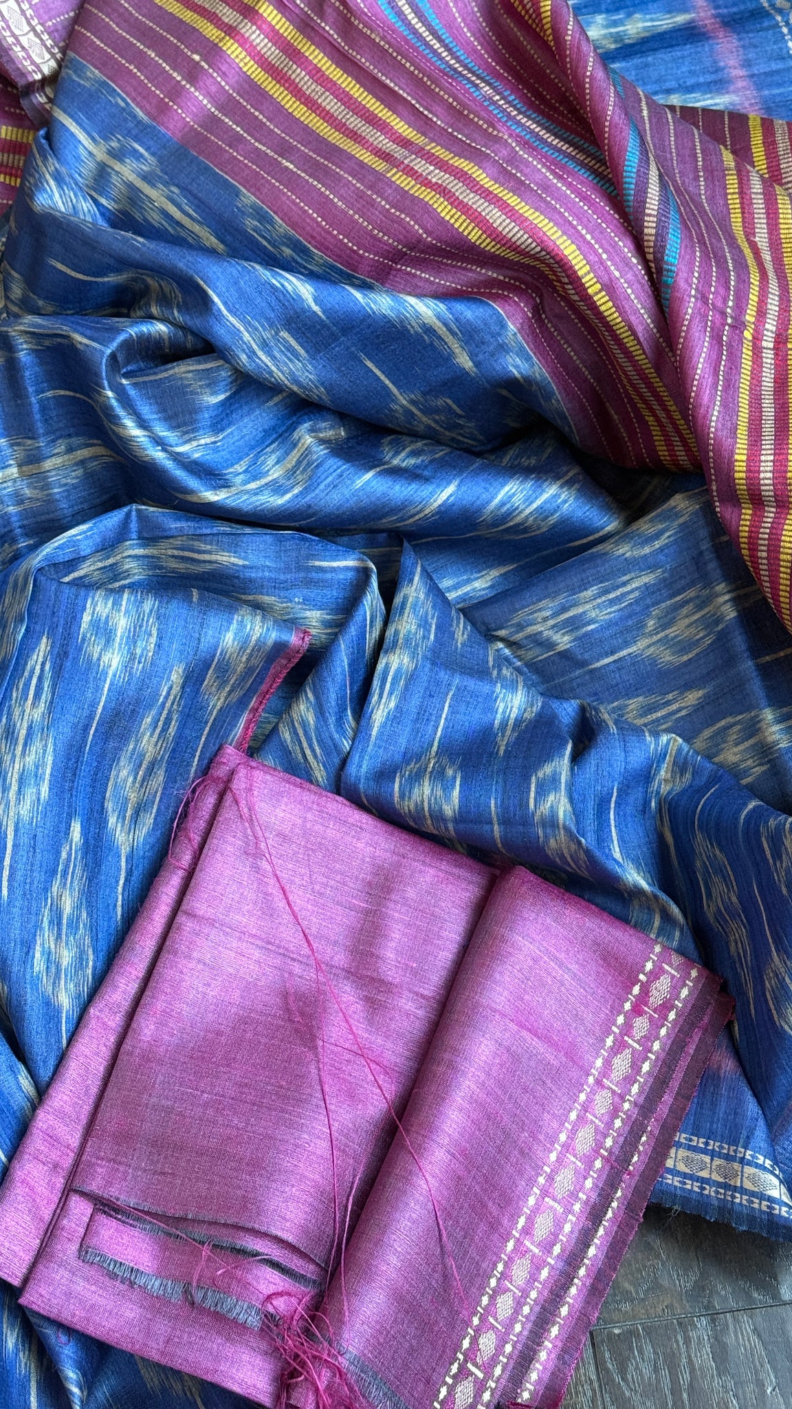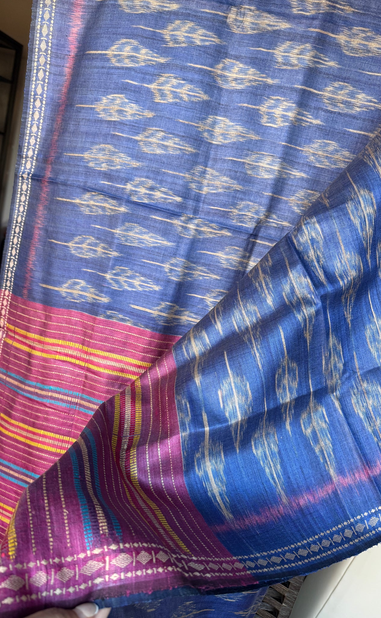 Gopalpur Tussar Silk Ikat - Blue Multi Color