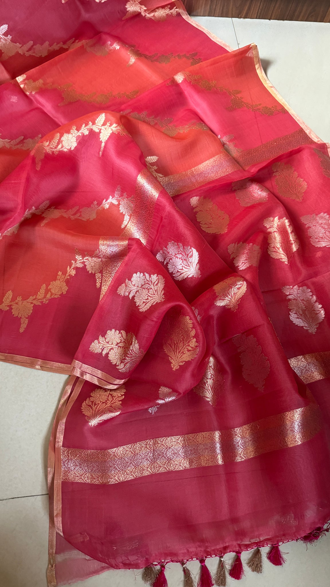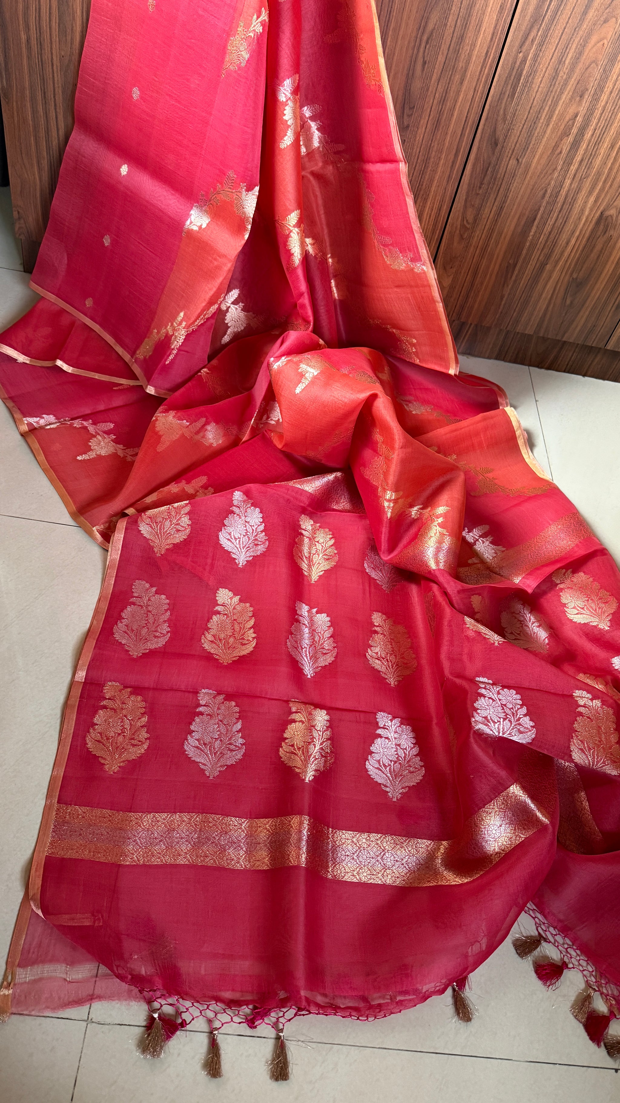 Kora Silk Leheriya Banarsi - Pink Orange Shaded