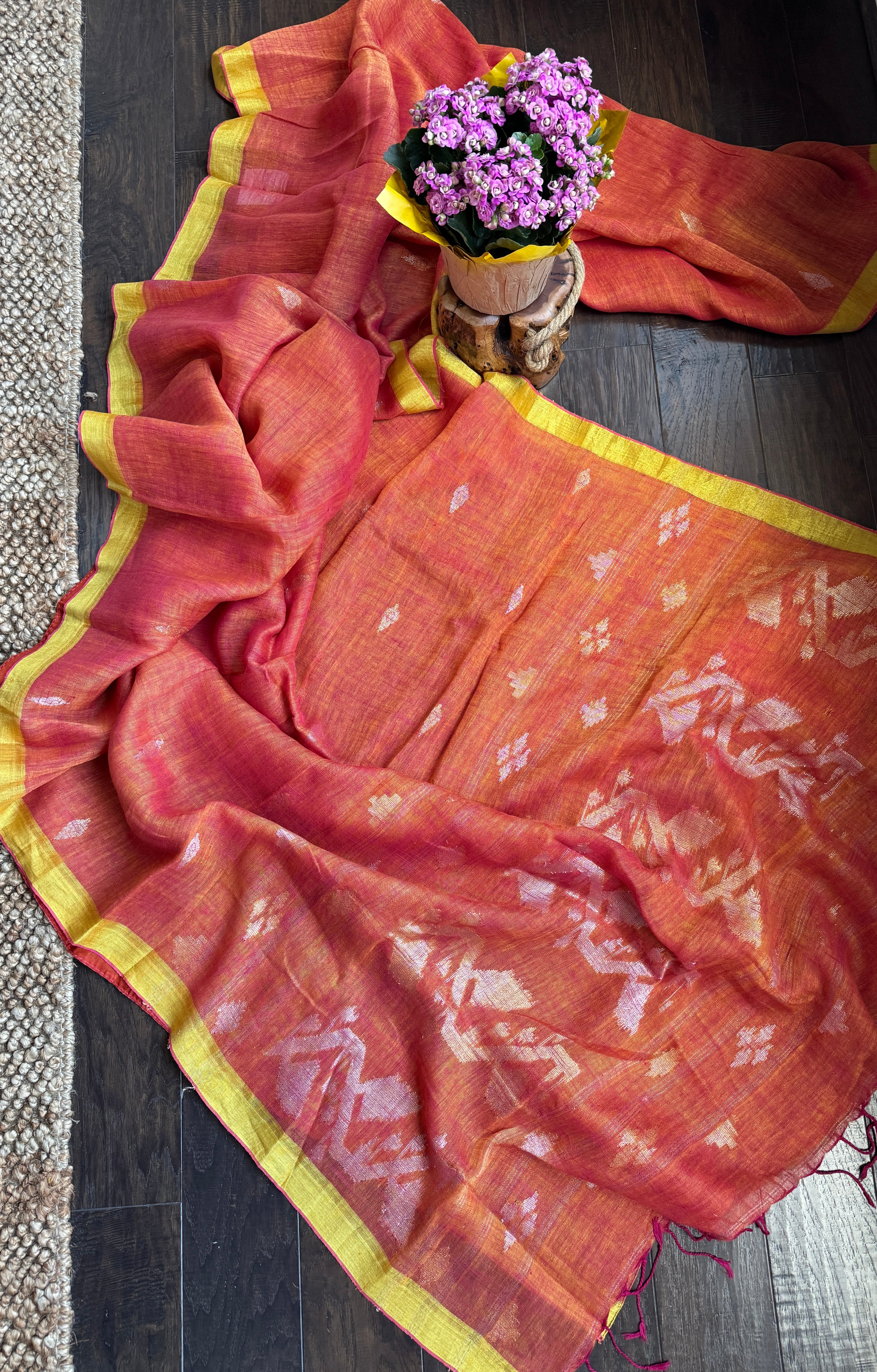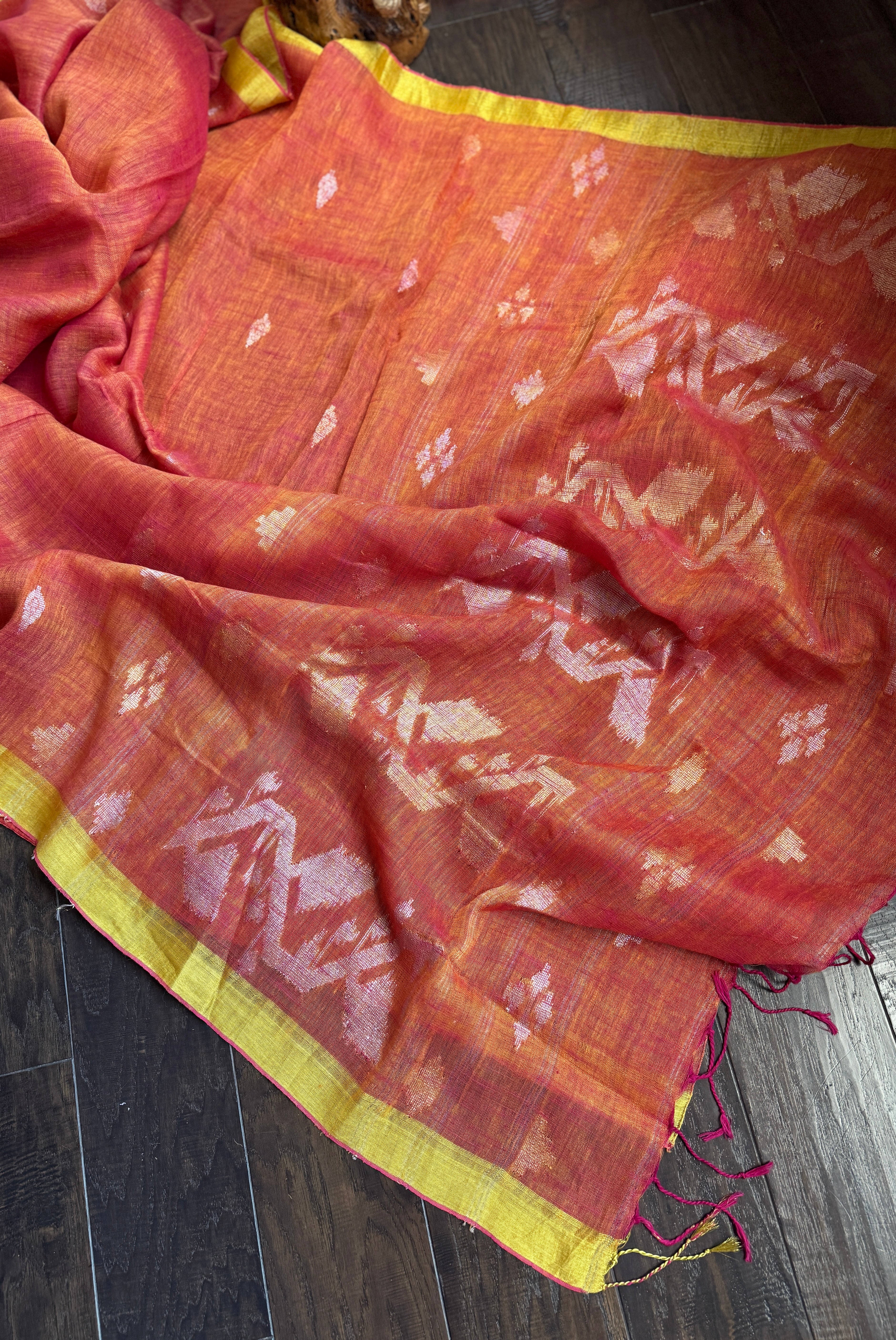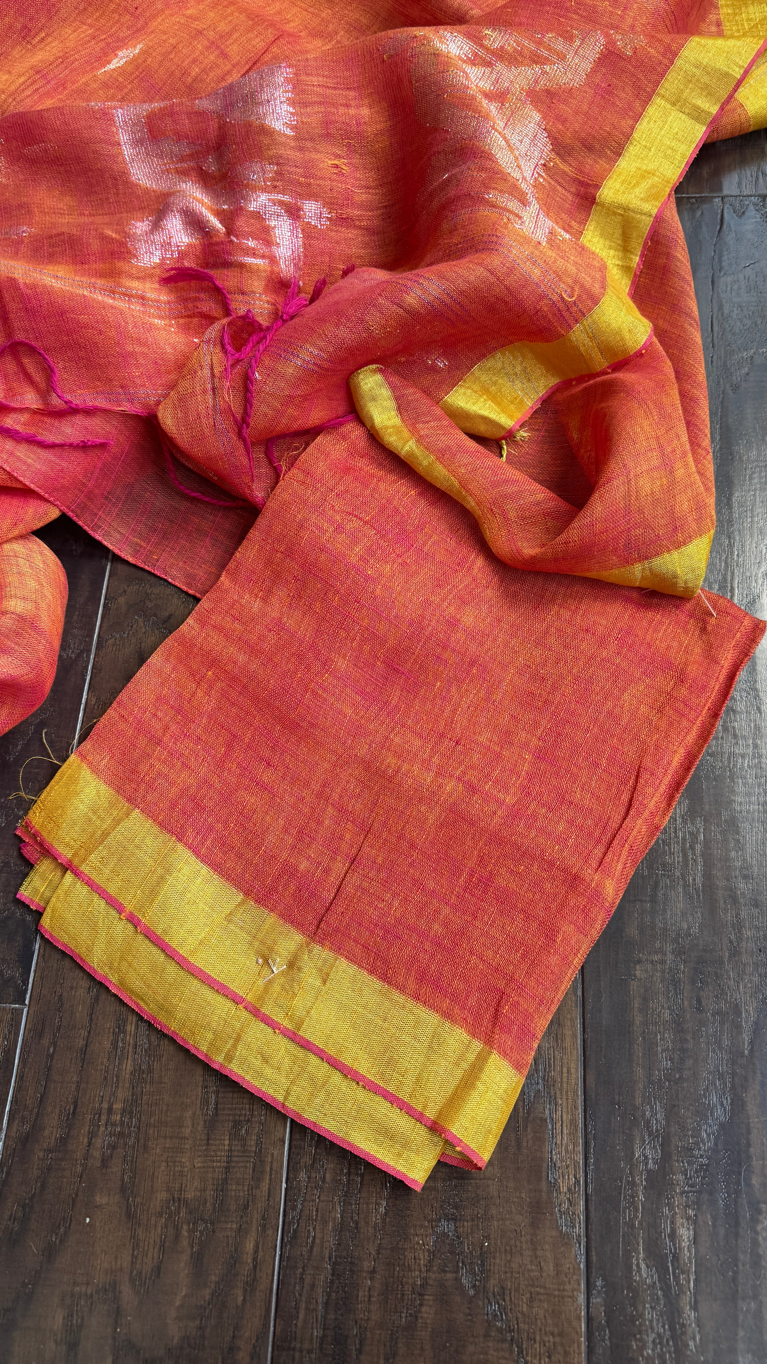 Linen Jamdaani - Orange Pink Dual Tone