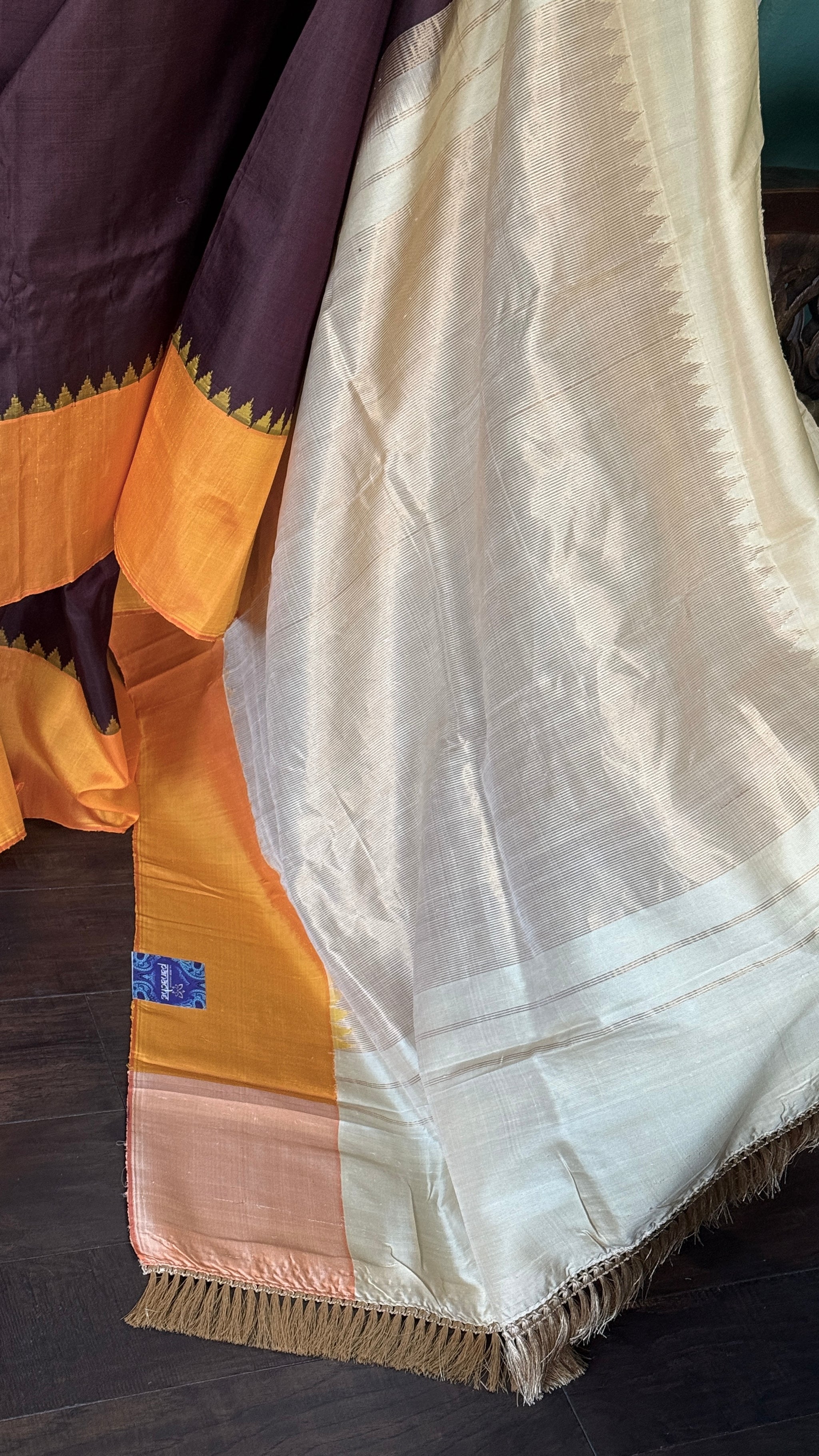 Pure Silk Gadwal - Plum Brown Ganga Yamuna