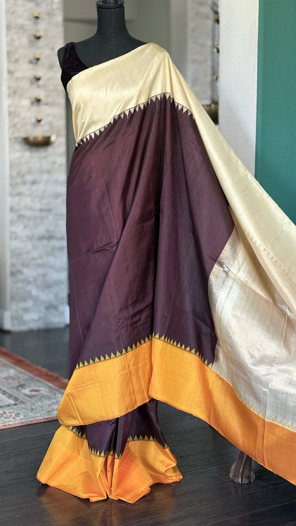 Color: Plum Brown, sunrise yellow, cream, antique gold Zari