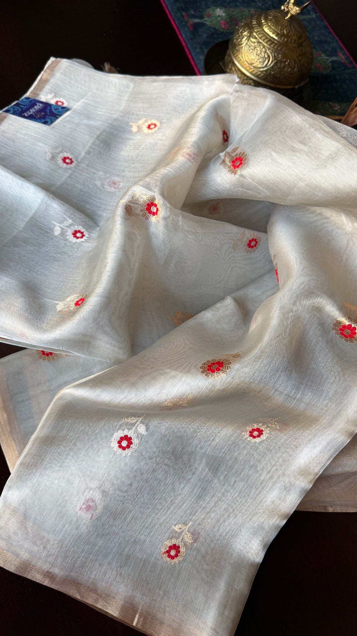 Pure Tissue Silk Banarasi - Silver Meenakari