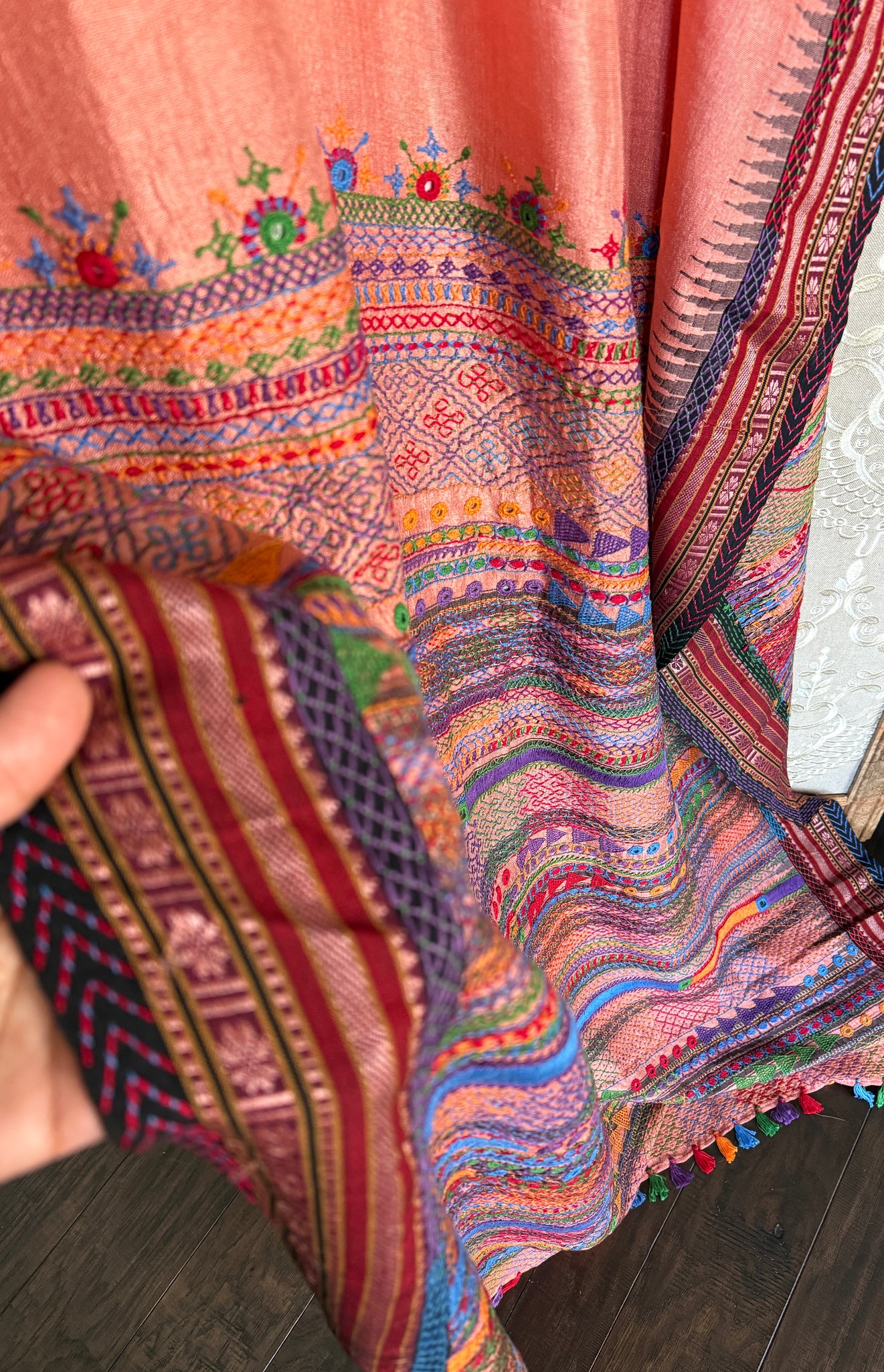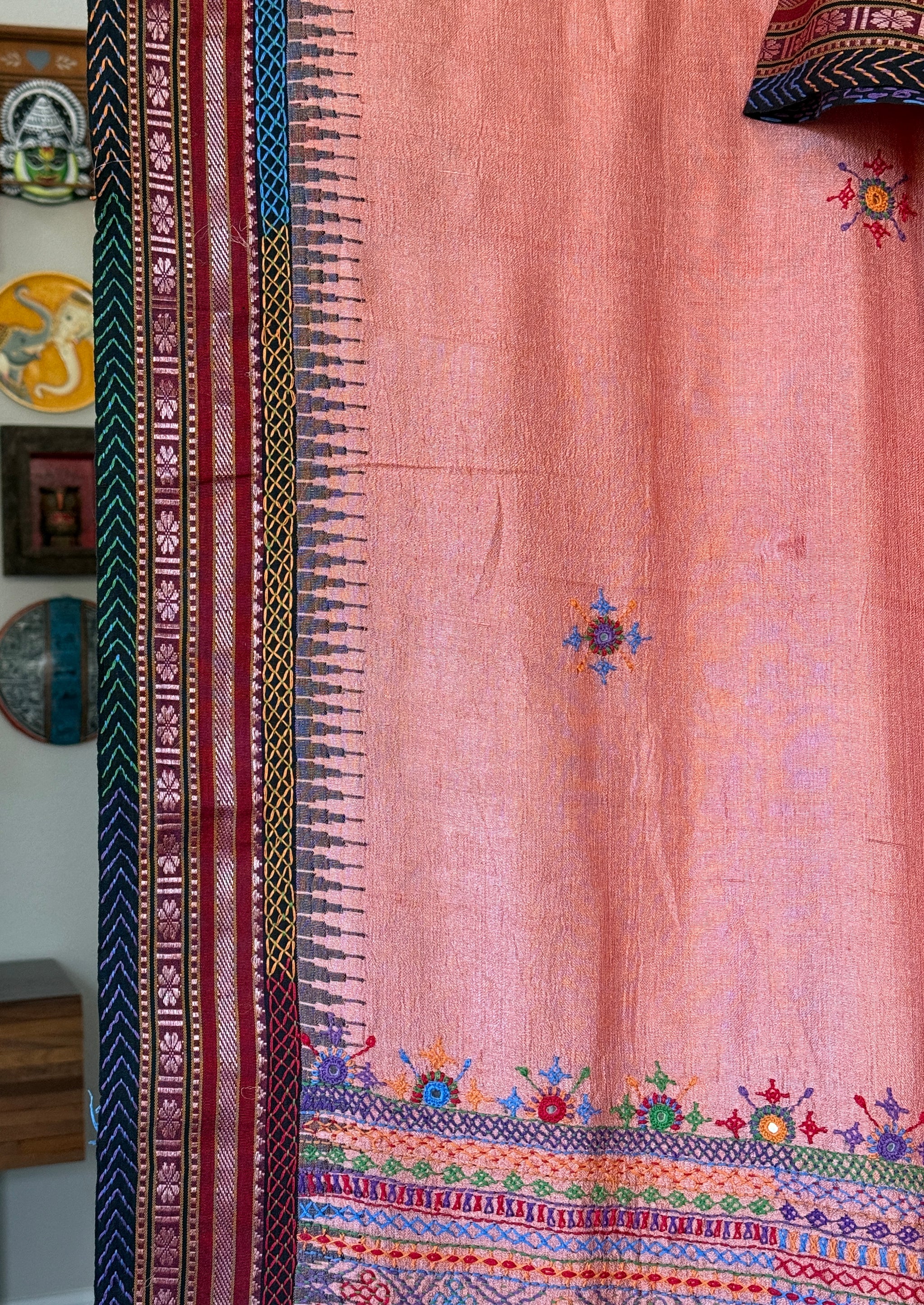 Pure Vidarbha Tussar Lambani - Peach Hand Embroidered